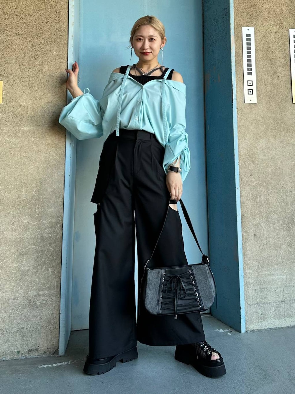 158cm 骨格ウェーブ 普通体型 上半身薄め 下半身しっかりめ トップス シンプルにもオフショルでも着れます◎ 肩の紐をつけるだけなのでめちゃくちゃ簡単です◎!! ゆったりのシルエットです✨ パンツ サイドが少しカットされたデザインで、 肌見せが苦手な方にもおすすめのパンツ! ワイドシルエットで楽ちん◎