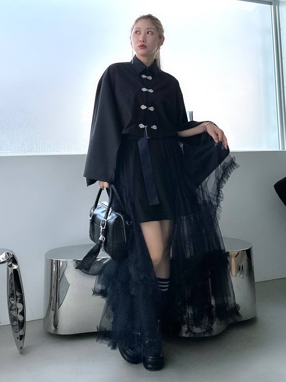 158cm 骨格ウェーブ 標準体型 上半身平均下半身しっかりめ 夏に肌見せしたいけど 足はあんまり見せたくない方におすすめのコーデ!! ⭐︎トップス さっぱりとした薄手のシャツ チャイナパーツで開閉なので ポイントになって可愛いのがポイント!! ゆったりめです◎ ⭐︎スカート ベルトでウエスト調整できるので 気にせず着用できるのがポイント!!