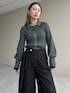 158cm 骨格ウェーブ 標準体型 上半身平均下半身しっかりめ リブニットは柔らかくて伸縮性抜群!! 細身に見えますが窮屈感はなく、着やすいです◎ パンツは表面感が凸凹としたレースでポイントに! ワイドシルエットで楽な履き心地です✨
