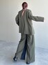 158cm 骨格ウェーブ 標準体型 上半身平均 下半身しっかりめ クールなセットアップスタイル カーキとネイビーで大人な配色がポイント✨ ジャケットはかちっとめ パンツはダボっと