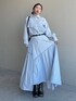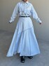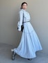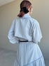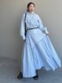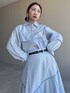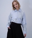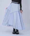 158cm 骨格ウェーブ 標準体型 上半身平均 下半身しっかりめ パッチワークデザインのシャツとスカート ブルーのストライプなので 爽やかで女性らしく着れます✨