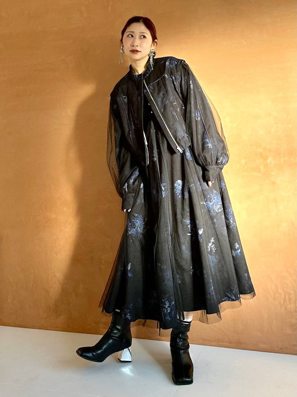 158cm 骨格ウェーブ 標準体型 上半身平均下半身しっかりめ 同じ素材と柄のブルゾンとキャミワンピ チュールで甘さを出しつつ 柄でモードに着れるアイテムです✨ ブルゾンは袖が外せるので 着回しできます!!