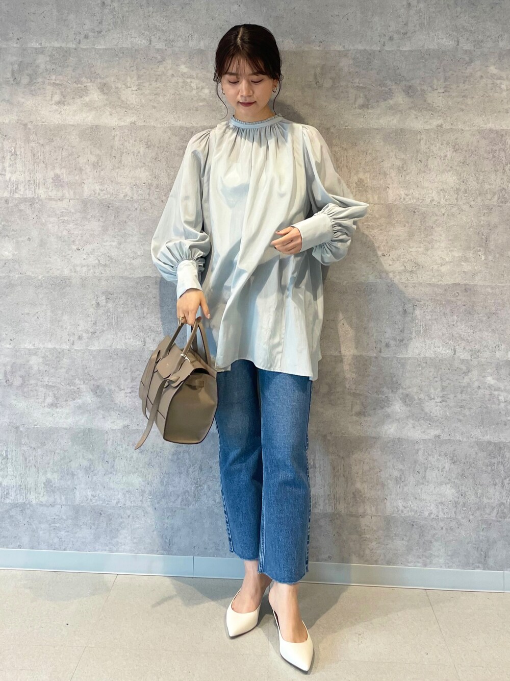 艶ブラウス🧊🪞 柔らかいパフスリーブも魅力的♡ ※詳細はクレジットで。 blouse 🏷31430010009 color/saxblue,black size/F price/¥19,800(税込) 🍋instagram →takeuchi_rougeviflacle
