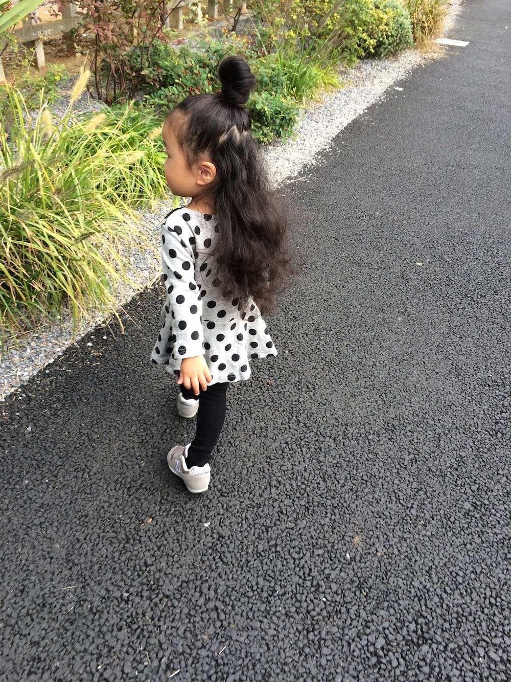 このワンピース前から見ると襟がラウンドでかわいいのに逃走しまくりでこれしか撮れなかった(笑)