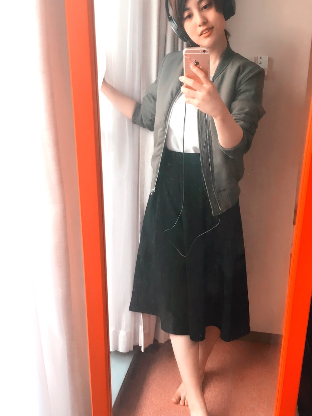 ゆるっとカジュアルコーデ😌 いい天気だし、せっかくの休日なので 音楽を楽しみながらお散歩! Boseのヘッドフォンに合わせて MAー1をプラスしました。 ちなみによく聴くのはZEDDとtiestoです🎵