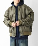 YUHEIのMA-1「【ZIP FIVE】 オーバーサイズ MA-1 ミリタリー フライト ブルゾン ジャケット」を使ったコーディネート
