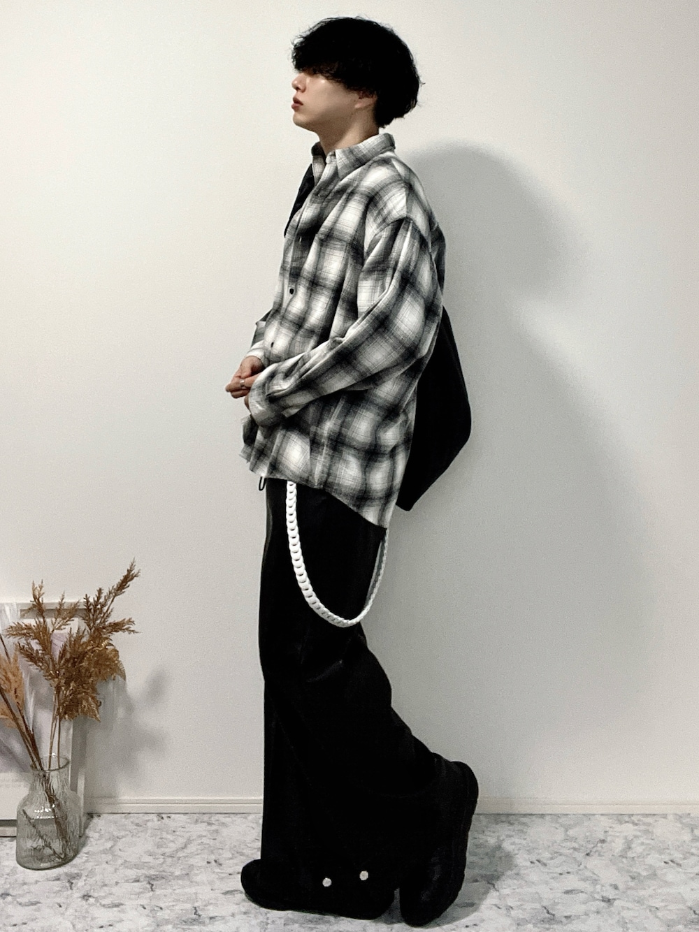 YUHEIのシャツ/ブラウス「限定展開 Relax Fit リラックスフィット オンブレチェック ネルシャツ/ビッグシルエット」を使ったコーディネート