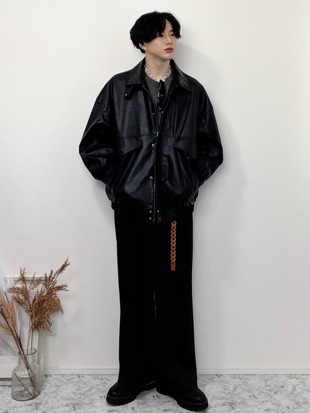 YUHEIのブルゾン「【CLEL】Vintage Design Blouson/ヴィンテージデザイン合皮ブルゾン」を使ったコーディネート