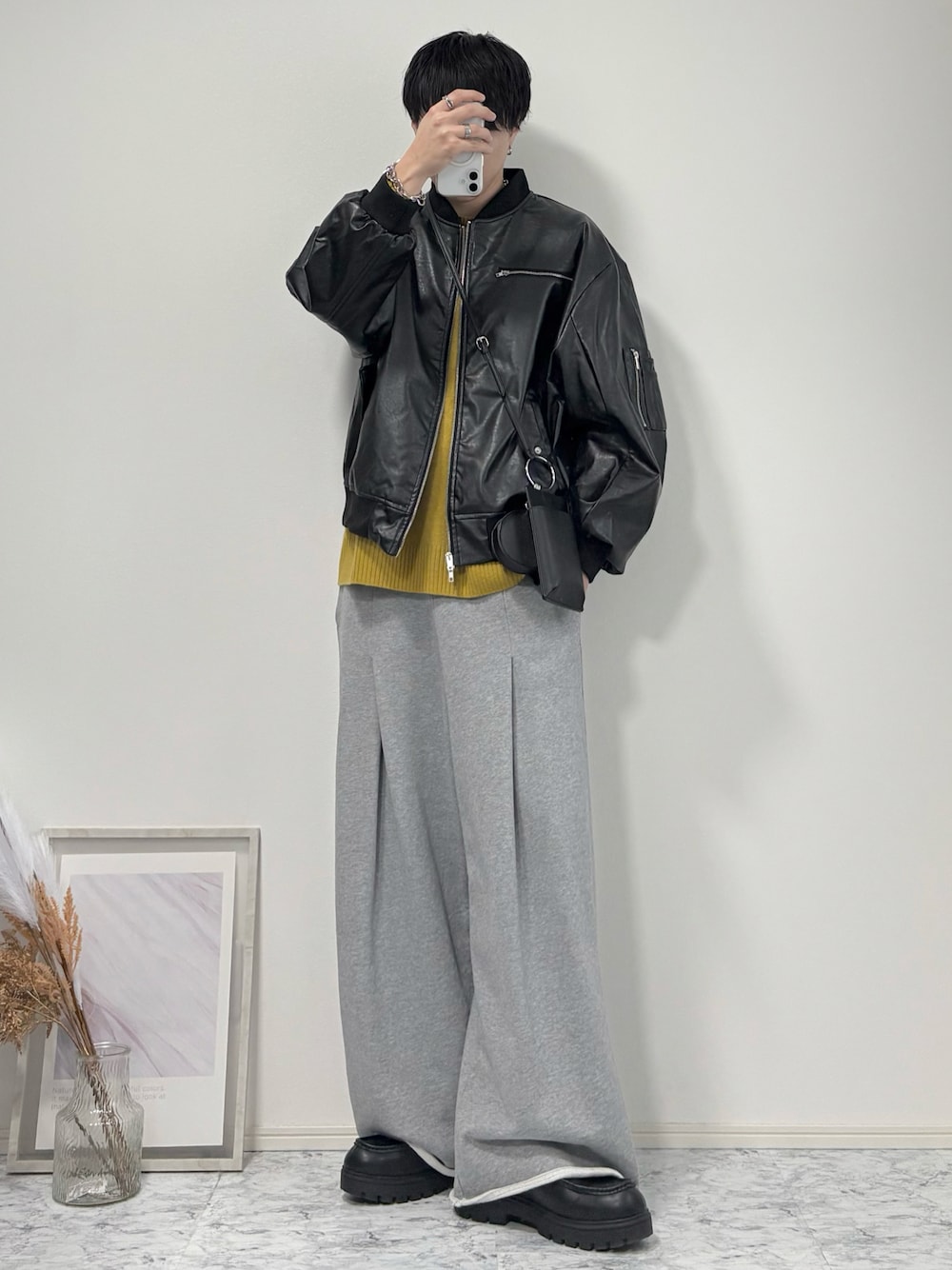 YUHEIのMA-1「ショート丈ナイロン/合皮中綿MA-1【UNISEX】」を使ったコーディネート