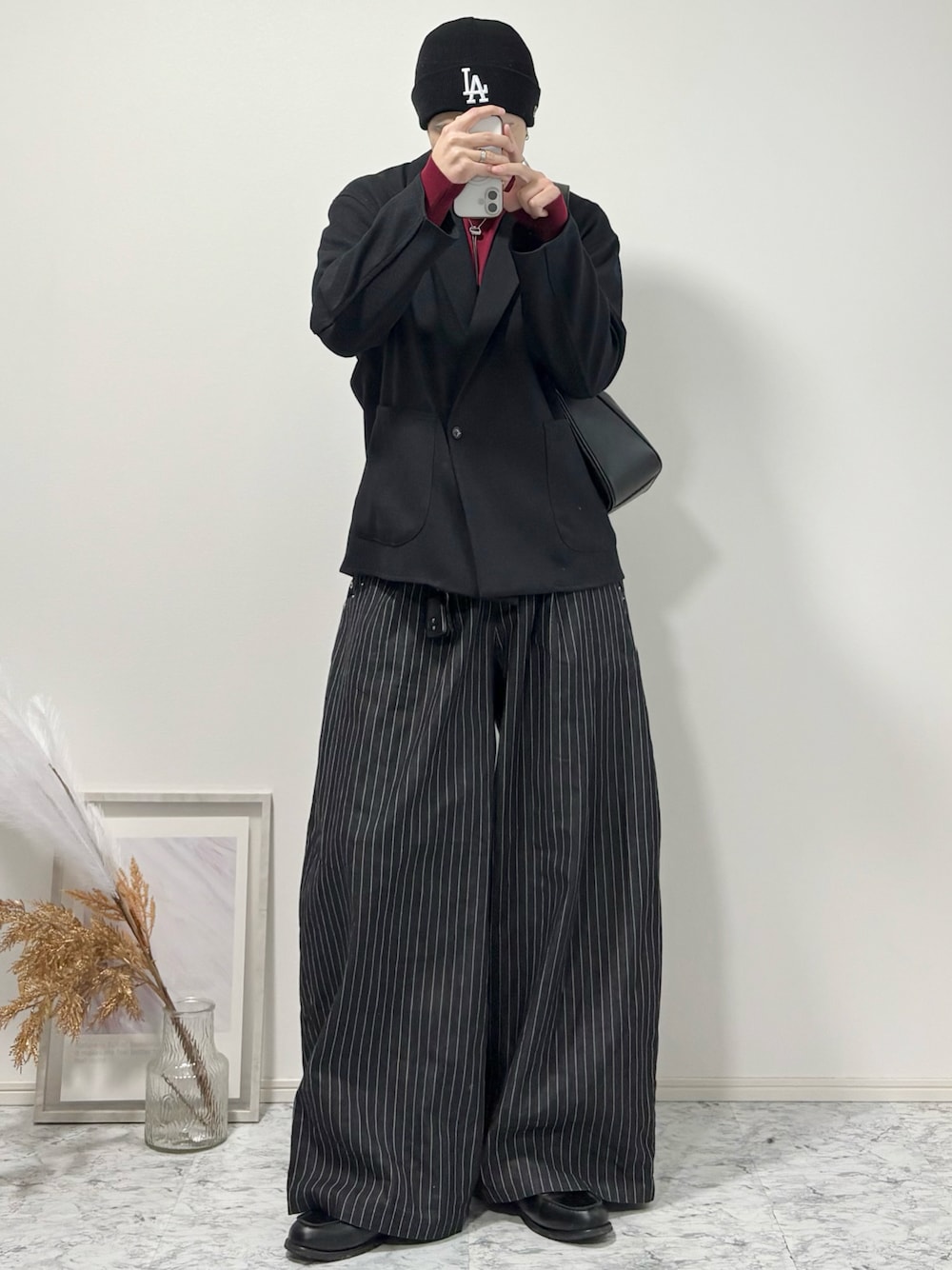 YUHEIのスラックス「ASSORT SUPER BAGGY STUDS DESIGNS DOUBLE POCKET SLACKS(SETUP)/アソートスーパーバギースタッズデザインダブルポケットスラックス(セットアップ)」を使ったコーディネート
