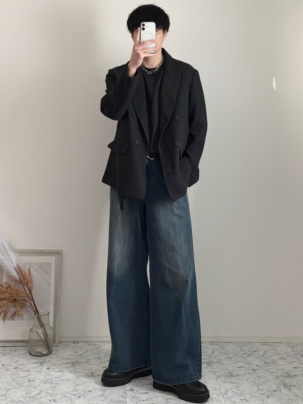 YUHEIのテーラードジャケット「Tweed double tailored jacket / ツイードダブルテーラードジャケット」を使ったコーディネート