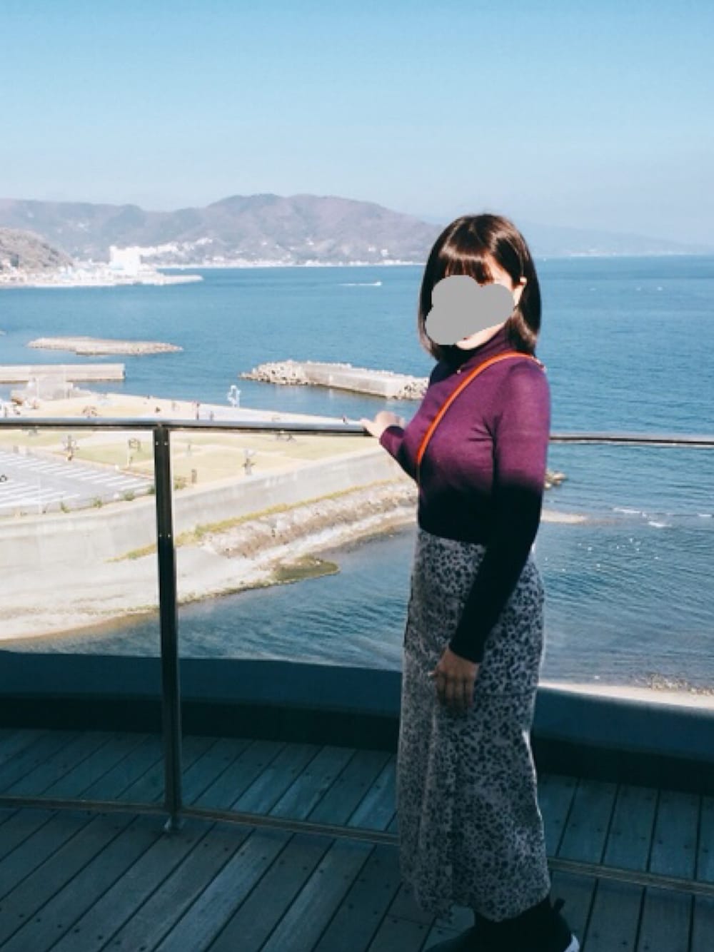 柄コーデ タートルネックにロングのタイトスカートで縦長効果