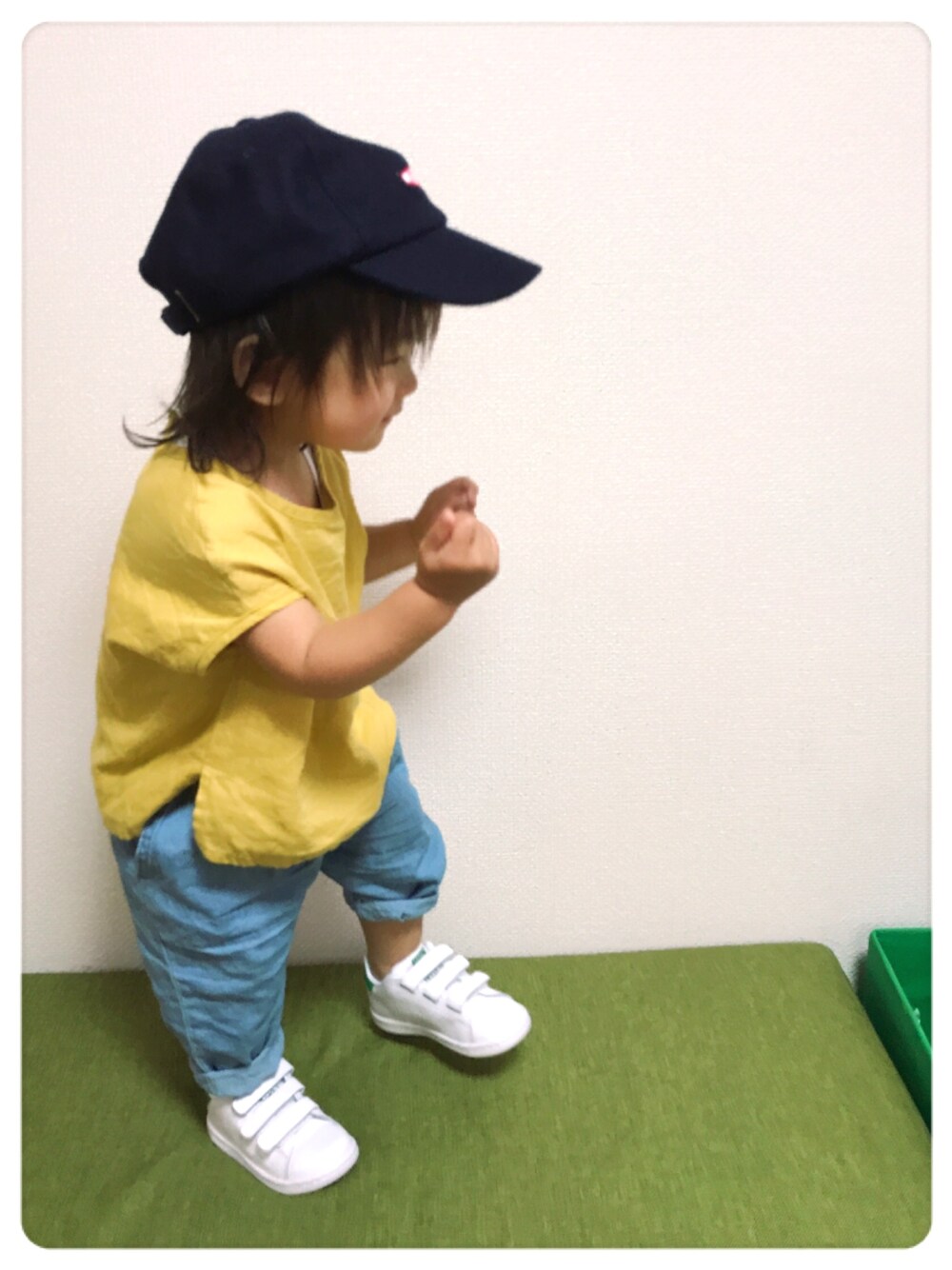 みぃころのキャップ「親子お揃い【KIDS】ロゴワッペンローキャップ」を使ったコーディネート