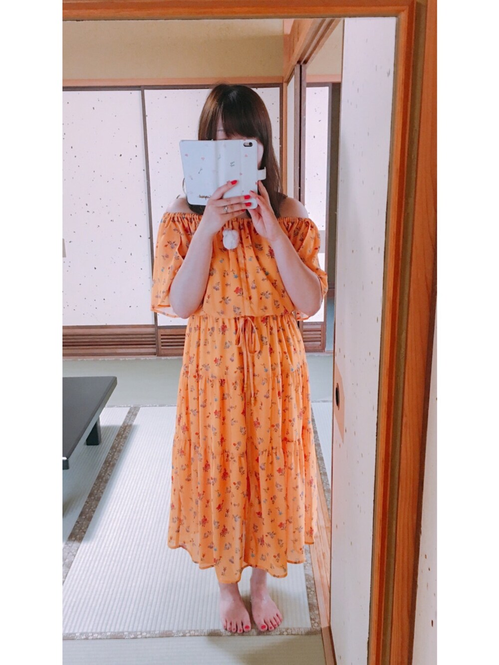 マーキュリーの花柄ワンピ♥︎ マスタードは初挑戦でしたが、なかなか夏らしくて気分が上がります🌼