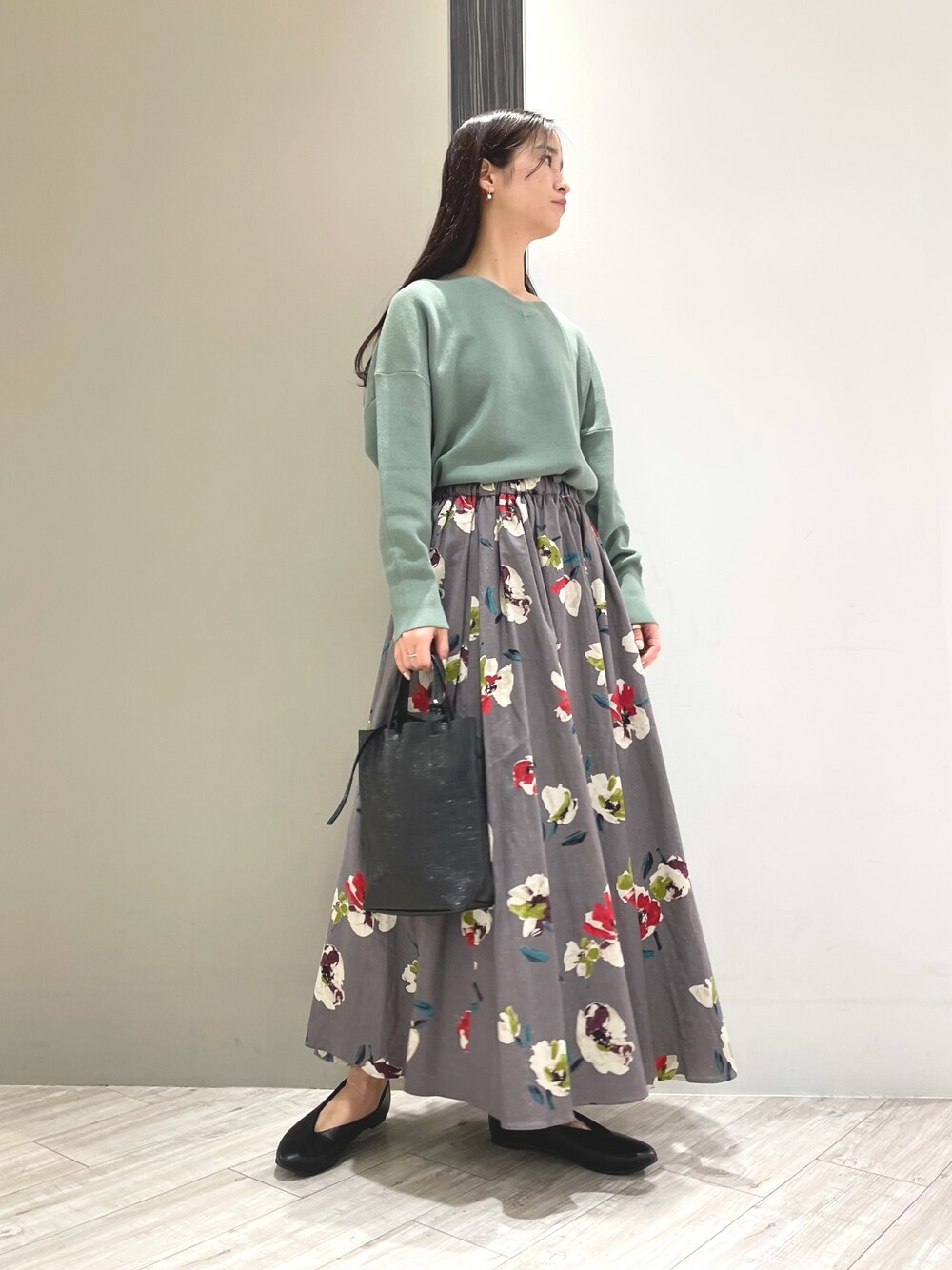 yunoのスカート「リネンコットンフラワープリントスカート」を使ったコーディネート