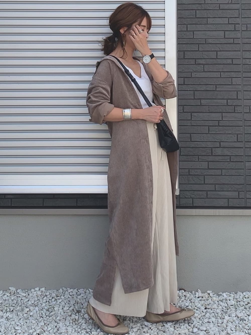 yunのワンピース「コーデュロイロングシャツワンピース」を使ったコーディネート