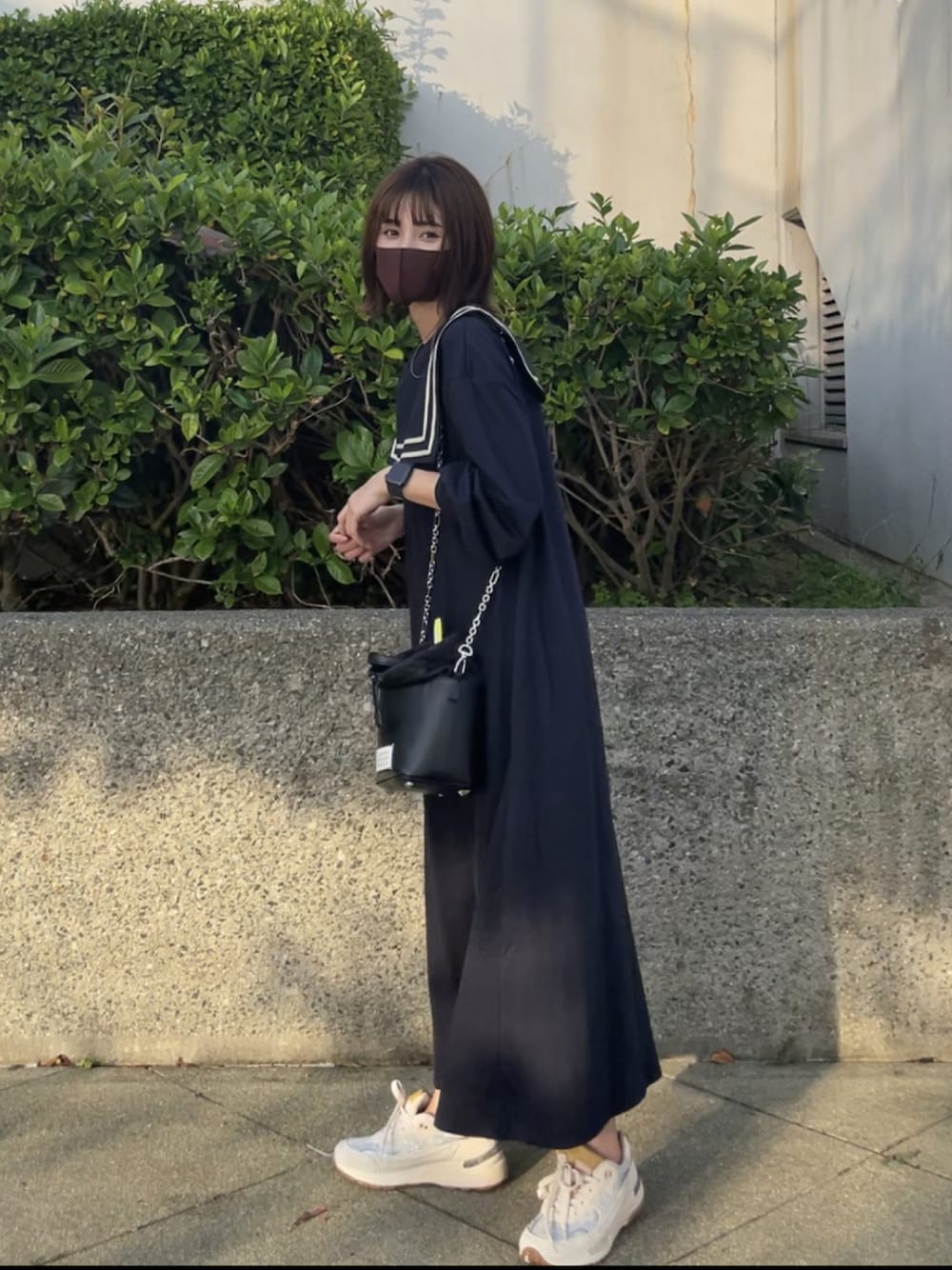 BIGセーラーカラーワンピ♡ トレンドのセーラーカラーが可愛い😍 足元はスニーカーで 甘くなりすぎないように☺︎