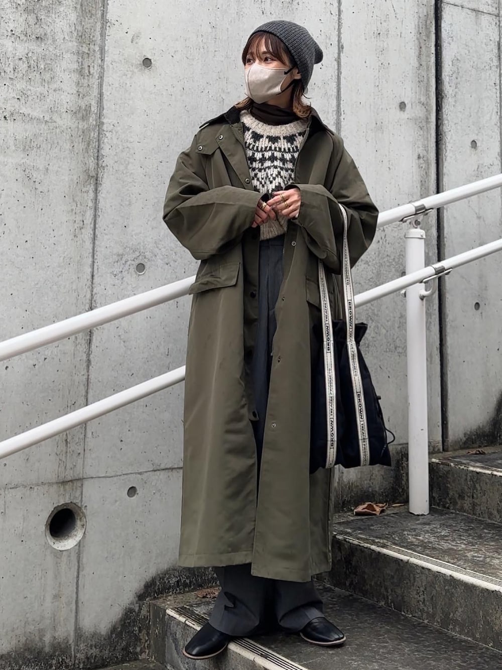 yunのステンカラーコート「コーデュロイカラーワークコート」を使ったコーディネート