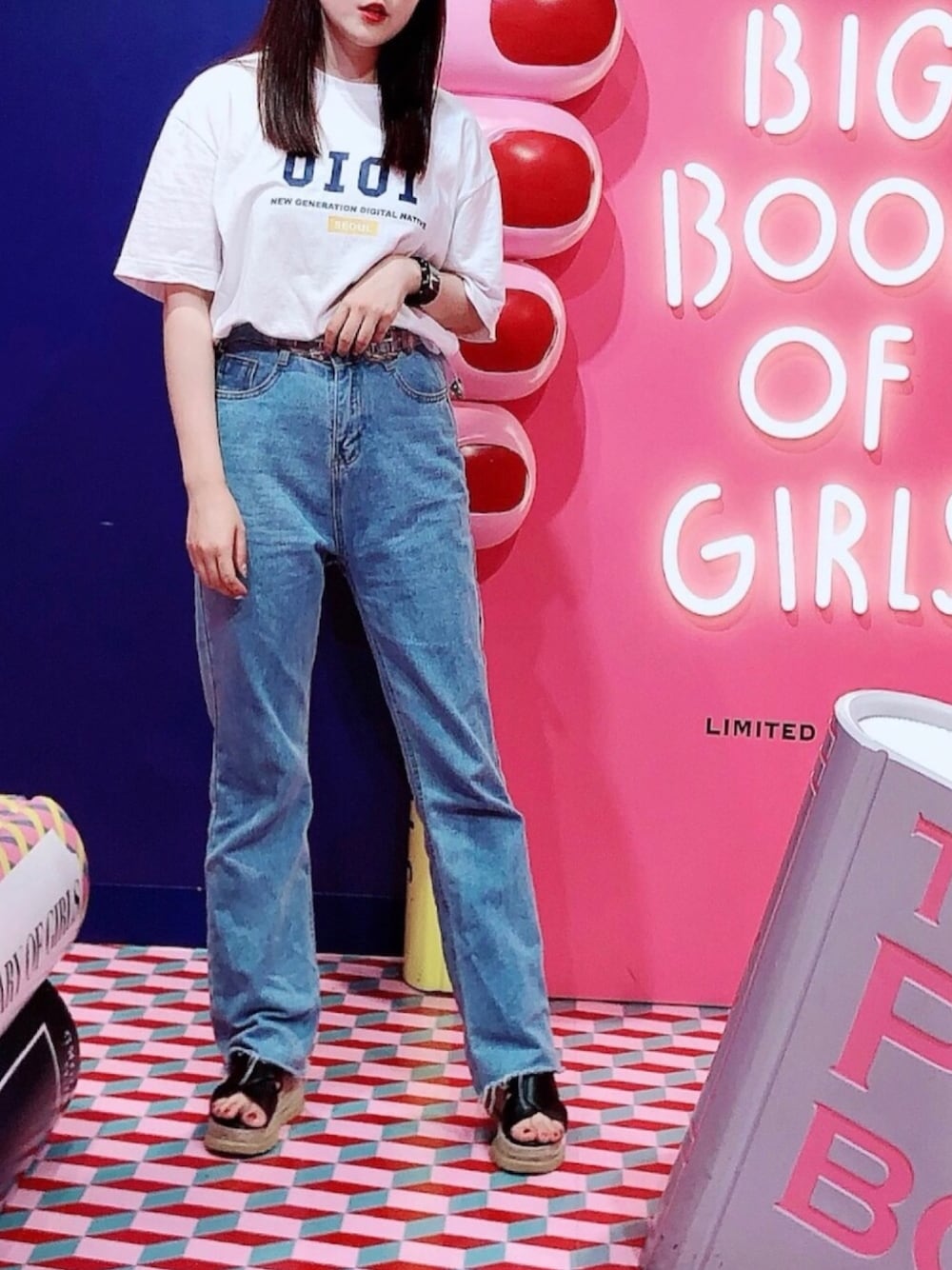 韓国ブランド 5252byoioi のTシャツを着用してみました! 着用サイズはLサイズ ハイウエストのストレートデニムでカジュアルなスタイリングに!