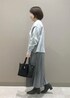 ニットにプリーツスカートをあわせたワントーングレーコーデです。