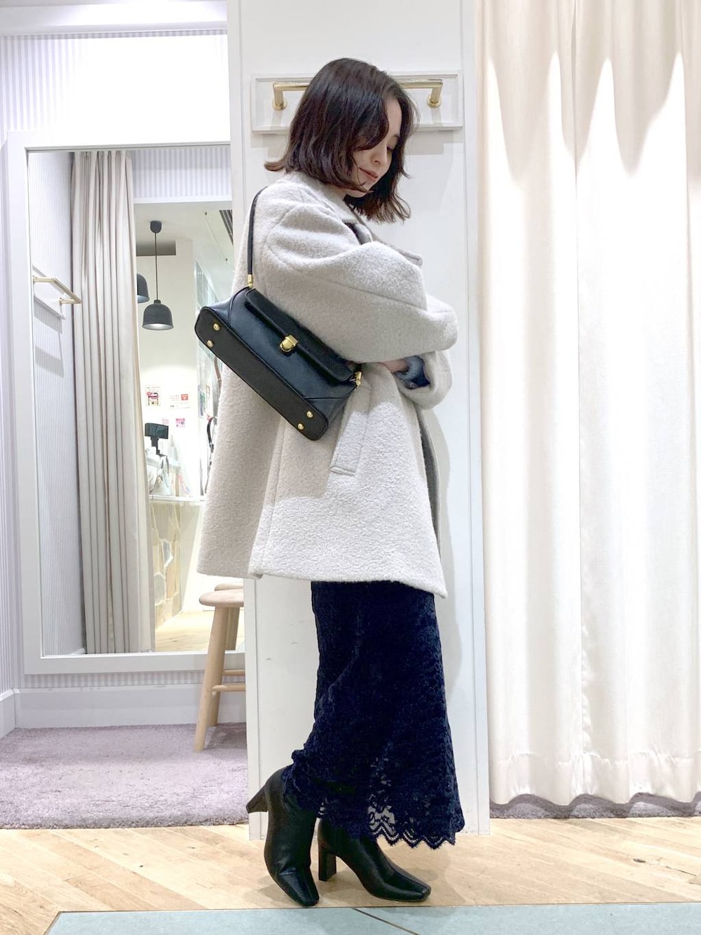 ご覧頂きありがとうございます🌼 →スワイプすると→動画、寄り画像などご覧頂けます \ブークレベルトハーフコート/ 見た目のボリュームに反して軽いブークレアウター❁ ▸▸生地の特徴 カーリーでモコモコくるくるとした表面が特徴で、 手触りがしっかりとしたブークレ ▸▸POINT モコモコくるくるとした表面感が可愛い ブークレハーフコート。(プードルの様です🐩) カジュアルなスタイルにはもちろん、 ウエストベルトで印象を引き締める事も可。 又、見た目のボリューム感からは 想像できないような軽さもポイントです ポリエステル100%なので比較的毛玉など 出来なさそうかなと思います  ̄ ̄ ̄ ̄ ̄ ̄ ̄ ̄ ̄ ̄ ̄ ̄ ̄ ̄ ̄ ̄ ̄ \ラメロングフェザーニット/ フェザー×ラメの映えニット 毛足の長いふわふわなシャギーが スタイリングに奥行きを与えてお洒落見えします 透明糸を使用した控えめなラメが、 光を受けてキラキラと品良く輝きます クロップド丈なのでボリュームございますが バランス取りやすく、ボトムにはタイトから フレアまで幅広く合わせて頂けます。 デコルテをきれいに魅せるボートネックで開き過ぎず、 かつ抜け感も出るアイテムです  ̄ ̄ ̄ ̄ ̄ ̄ ̄ ̄ ̄ ̄ ̄ ̄ ̄ ̄ ̄ ̄ ̄ \レースIラインスカート/ アンデミュウ定評のレースIラインスカートの新作Ver ベロア調のレースでトレンドをさりげなく取り入れ、 大人の女性におすすめできる上品な1枚です 巻きスカート風のデザインでパイピングの切り替えが 縦の目線を作り、印象を引き締めます。 腰部分はゴム仕様で、窮屈感のない着心地もポイント。 足さばきも良くショートブーツにも好相性です ポケット:なし ファスナー位置:左サイド  ̄ ̄ ̄ ̄ ̄ ̄ ̄ ̄ ̄ ̄ ̄ ̄ ̄ ̄ ̄ ̄ ̄ Instagram始めました! ぜひフォローお願いします♡ ▸▸ 是非参考にしてみて下さい◯