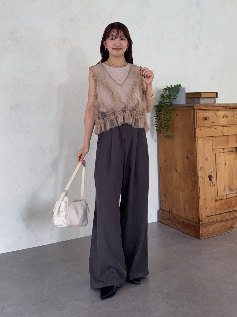 yuna(Thevon.)のTシャツ/カットソー「チュールフリルベスト×ノースリセットプルオーバー」を使ったコーディネート