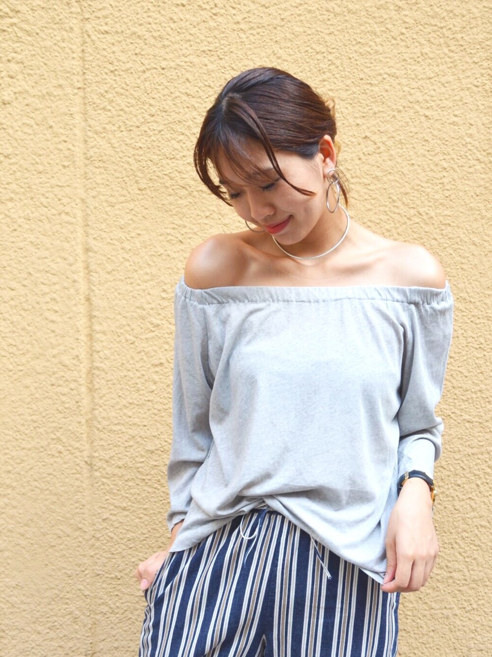 オフショルは今年も取り入れたいアイテム♥️ 長袖ですが、夏でもサラッと 着ていただけますよ✨🙌🏼