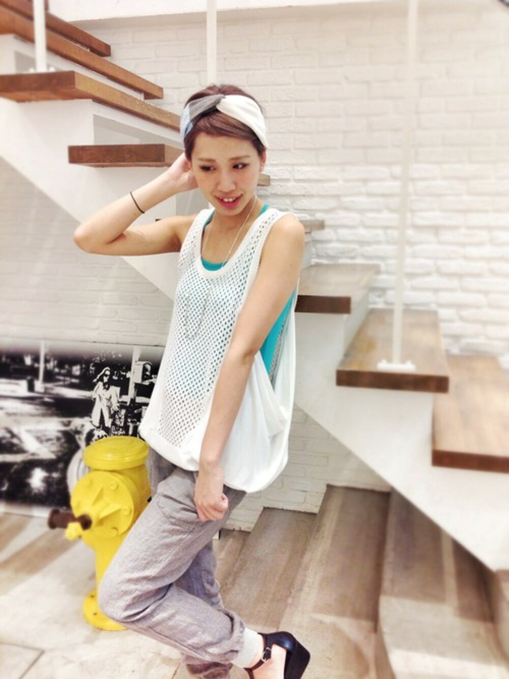 ADDISON(アディソン)のタンクトップは独自のメッシュ素材が魅力的な1枚♩ インナーに差し色を加えて明るい印象にっ! 少しAラインになっているので薄着になる夏でも体型カバーしてくれますよ♡