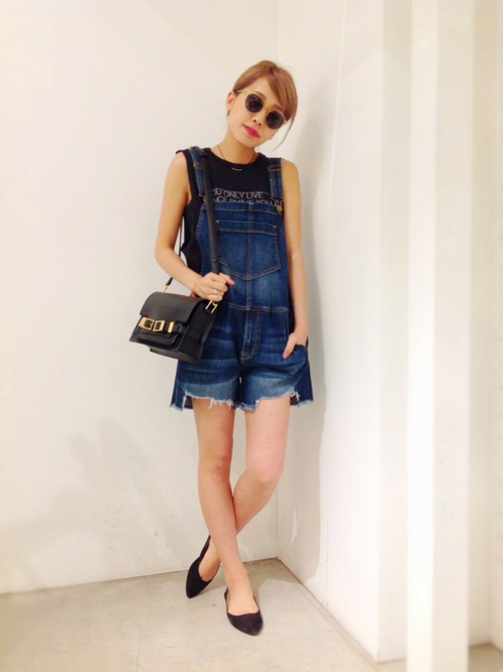 D-ID(ディーアイディー)のミニオーバーオールは、深いインディゴカラーと短すぎない丈で大人なカジュアル感を出しでくれます♩ ストレッチが効いているので着心地も◎◎◎ 足元は女っぽくキメてバランスを♡