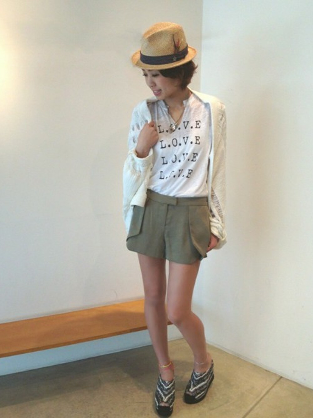 hama(CANALJEAN 神戸店)のTシャツ/カットソー「LOVE プリントカットオフTシャツ」を使ったコーディネート
