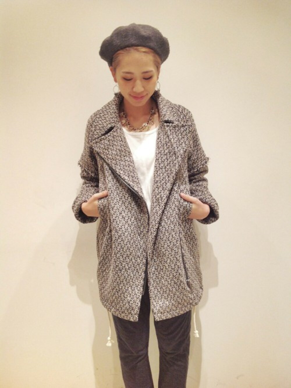 ツイード素材が可愛いcaie(カイエ)のzipコート♬ さらっと羽織るだけでコーディネートも主役になってくれます☺︎ Black×Whiteのカラーも合わせやすくてこの冬 大活躍しそう! 着丈が長すぎないのもgood★