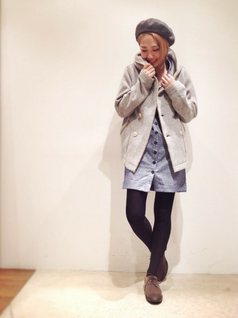 hama(CANALJEAN 神戸店)のピーコート「V::ROOM ヘリンボンフード付きショートコート/ブイルーム , V ROOM」を使ったコーディネート