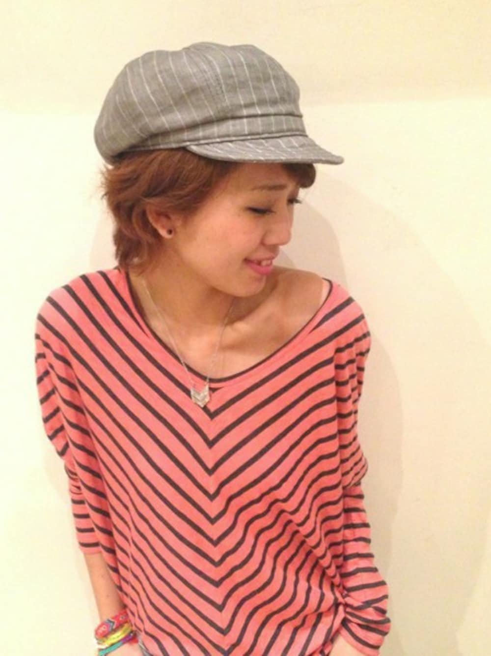 hama(CANALJEAN 神戸店)のキャスケット「NY HAT ストライプキャスケット/ニューヨークハット」を使ったコーディネート