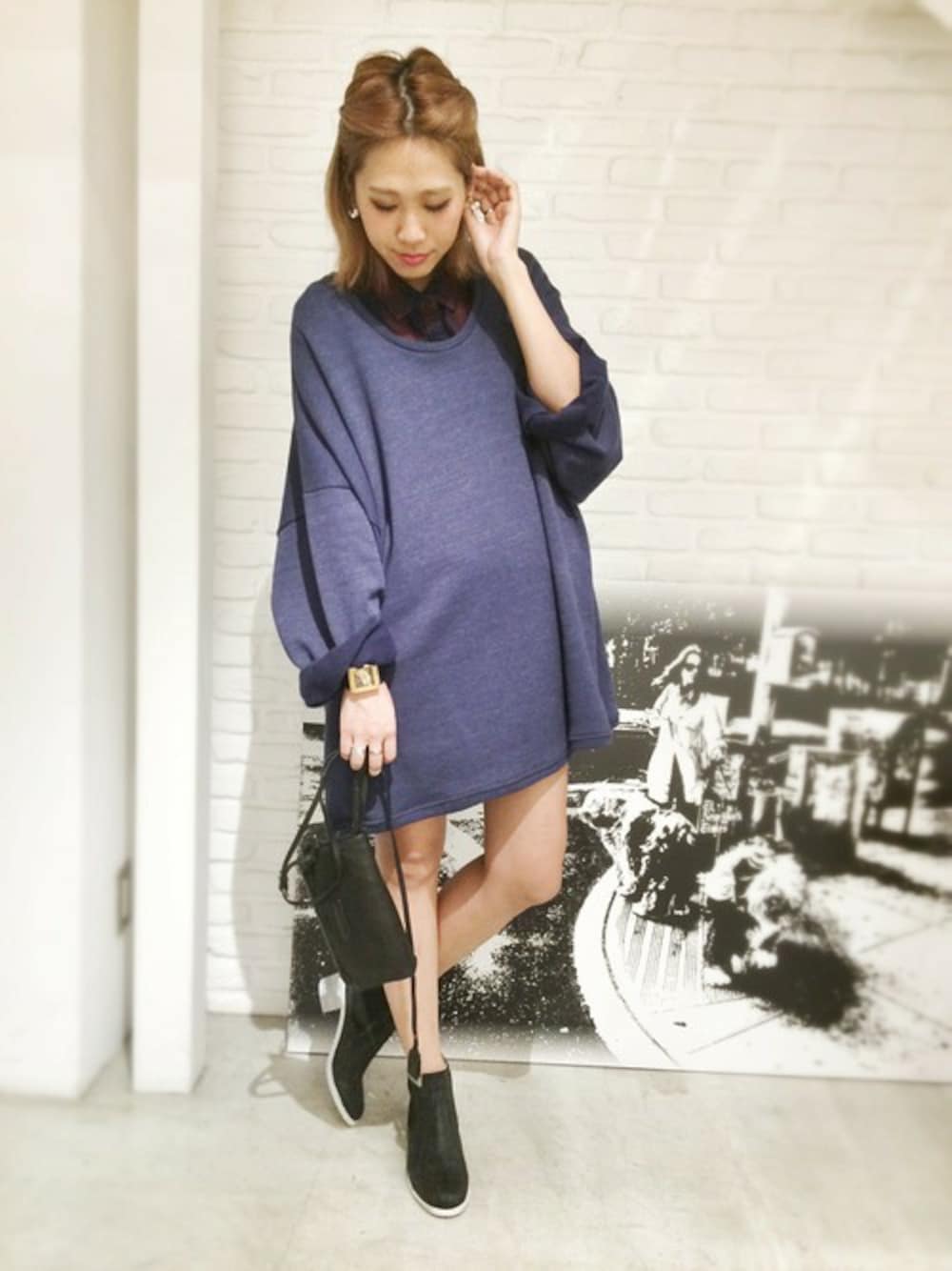 BIGサイズがたまらなく可愛いCaieのワンピース♥︎‼︎ Railのチェックシャツをインしてトラッドに♬ 小物はMolliniのブーツとFRYEのレザーバッグでblackで統一させました。