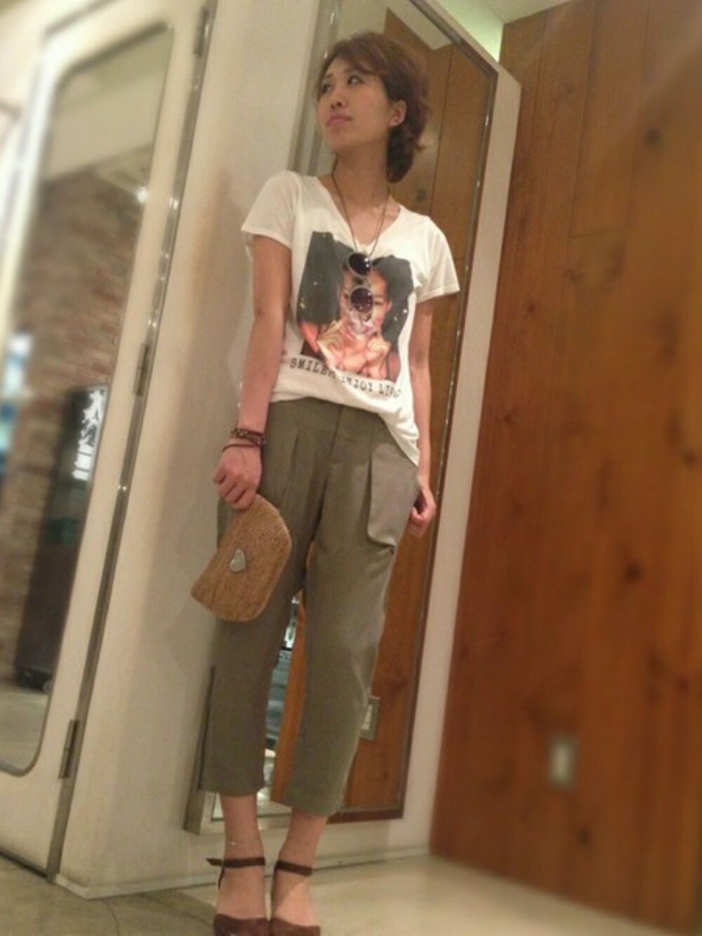 hama(CANALJEAN 神戸店)のTシャツ/カットソー「tordi/転写プリントTシャツ(Smile)/トルディー」を使ったコーディネート