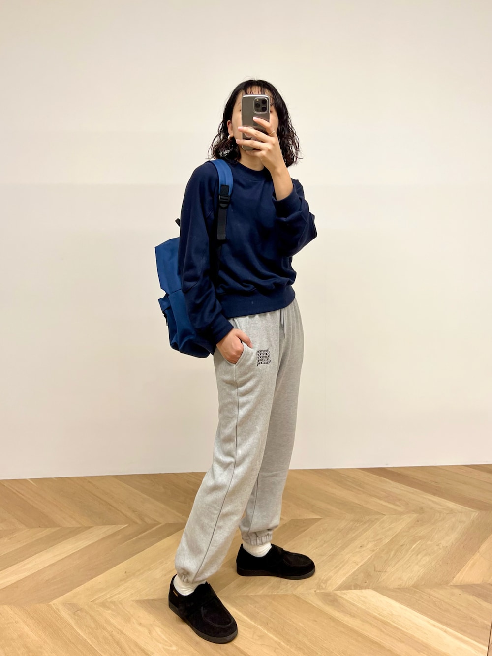 上下スウェットでも Elmarのコンパクト裏毛トレーナーなら すっきり見えてパジャマっぽくなりません◎