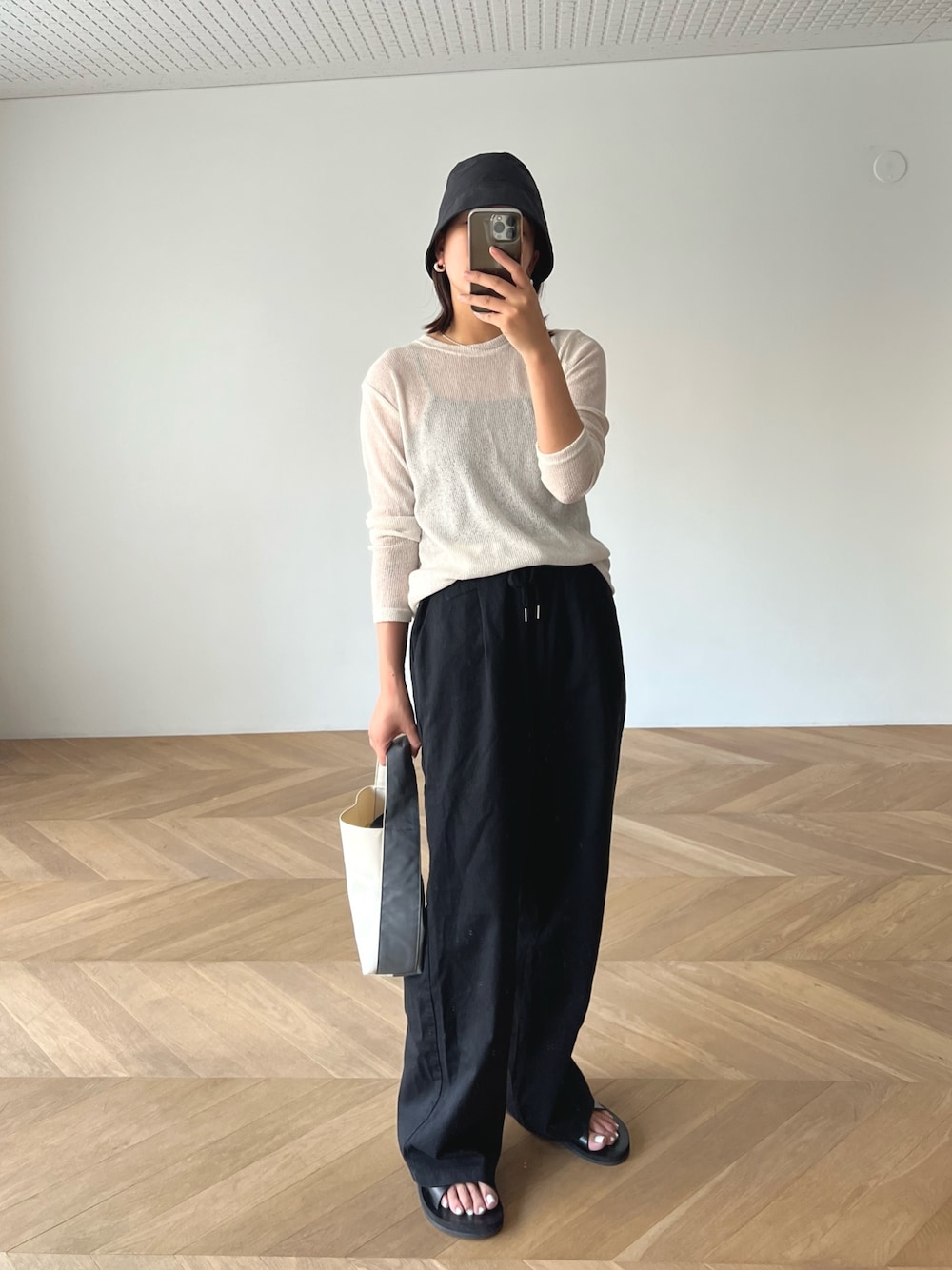 27℃ 今年も人気のリネン混リブロンTは キャミと合わすだけで トレンドのシアースタイリングに◎