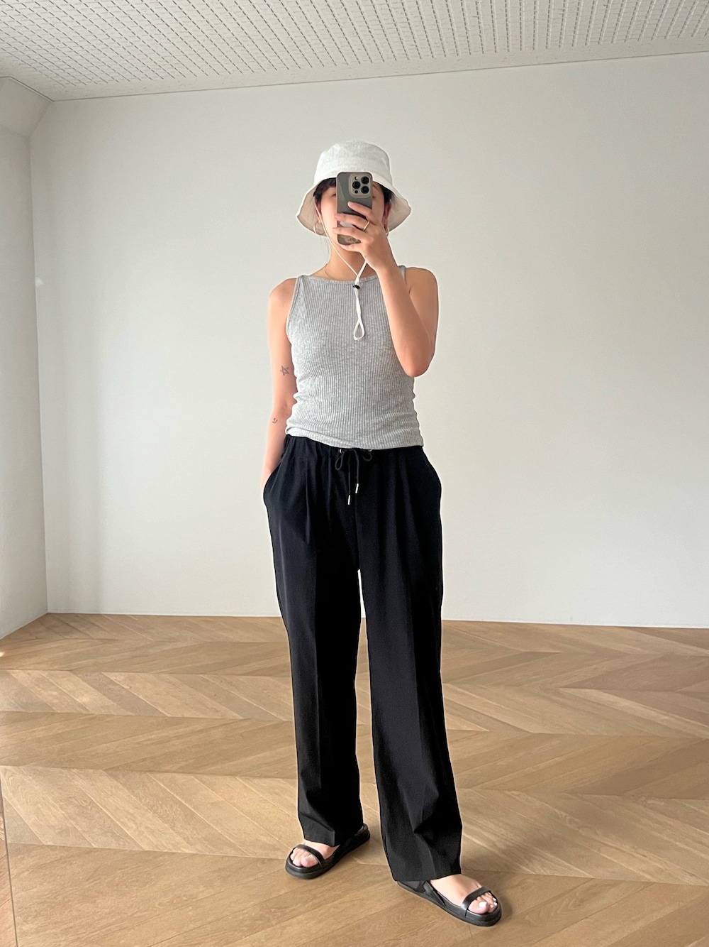 ストレッチが効いていて軽い素材のパンツは 真夏の暑いときに涼しくストレスフリーで履けます✨