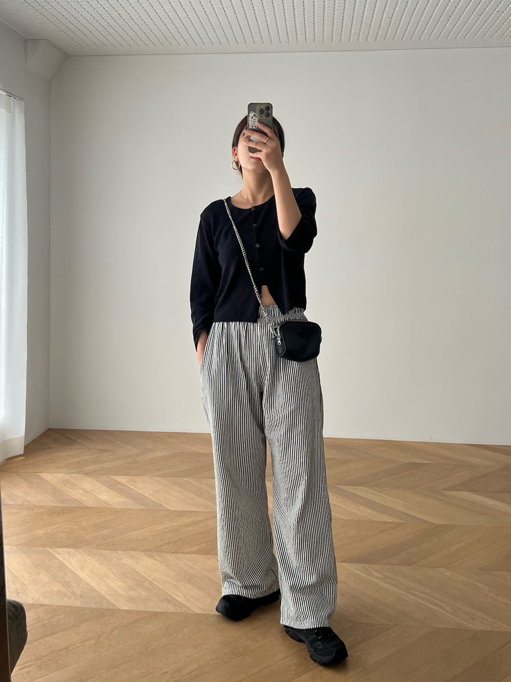 お気に入りのストライプパンツが 再入荷しました◎◎ 他はシンプルに合わすだけで おしゃれ感が出てくれます♪ カーディガンも日除けやクーラー対策に まだまだ活躍します👍🏼