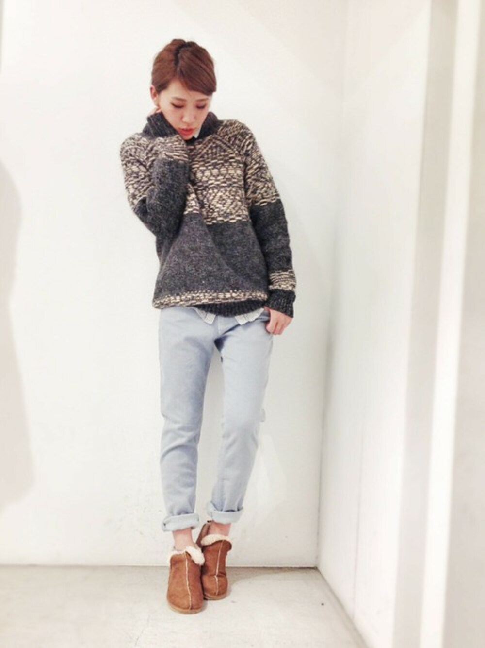 YANUK(ヤヌーク)のボーイズスリムパンツから新カラーが*** 柔らかい雰囲気で使いやすいブルーは、SHEPHERD (シェパード) ムートンブーツと相性◎です♪