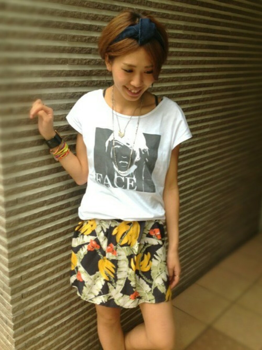 hama(CANALJEAN 神戸店)のTシャツ/カットソー「Lagoon FACE 転写プリントTシャツ/ラグーン」を使ったコーディネート