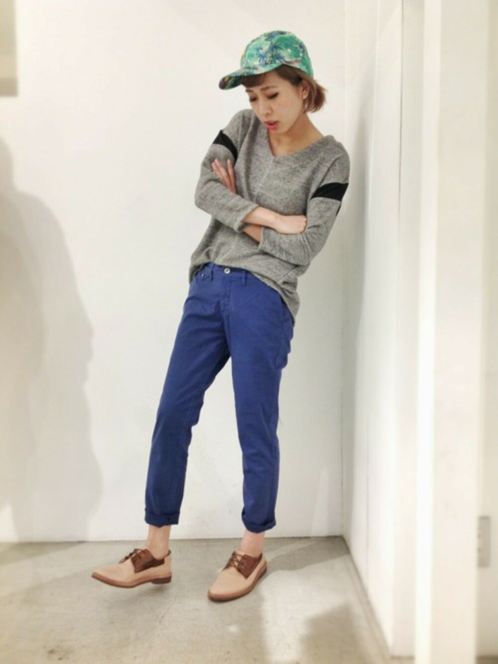 発色の良いYANUK(ヤヌーク)のカチノパンツは生地が柔らかくしっかりしていて、ずっと使えること間違いなしっ!!! シフォンとの切り替えが心をくすぐるデザインのMunich(ニューニック)のトレーナーとINK(インク)のCAPでラフにコーディネートしました☆★
