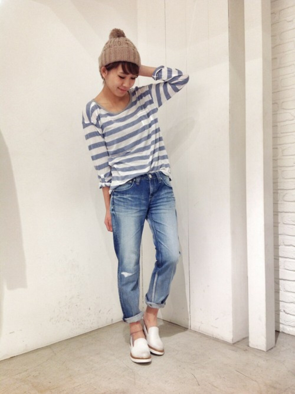 hama(CANALJEAN 神戸店)のデニムパンツ「YANUK(ヤヌーク) CECILクラッシュボーイズクロップドデニム /57151055」を使ったコーディネート