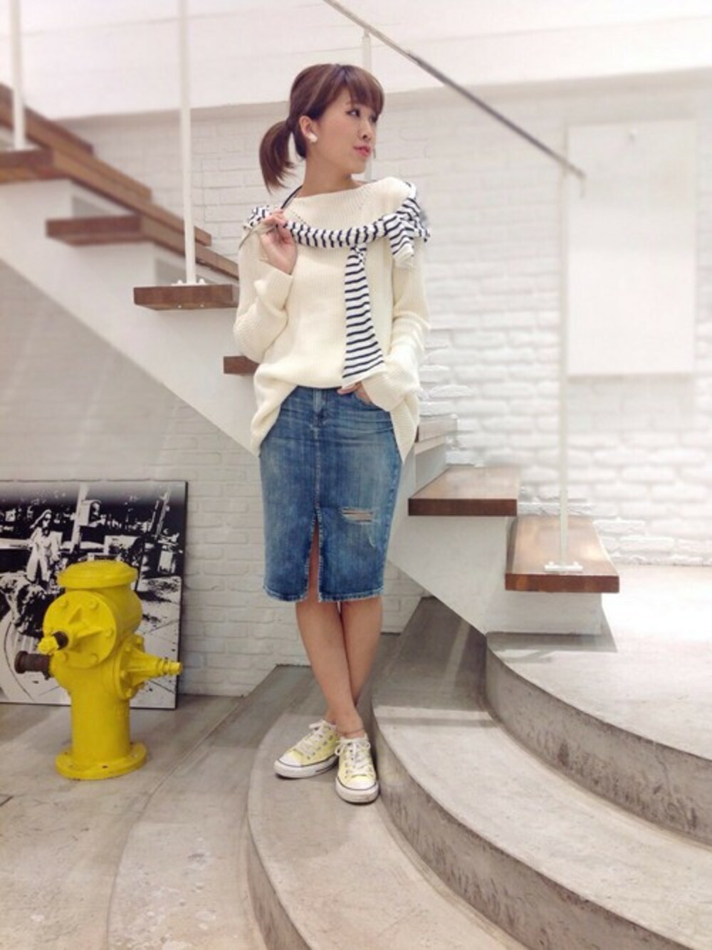 コットンニット×デニムタイトスカート* 春の訪れを待たずして着たいコーディネート❤︎