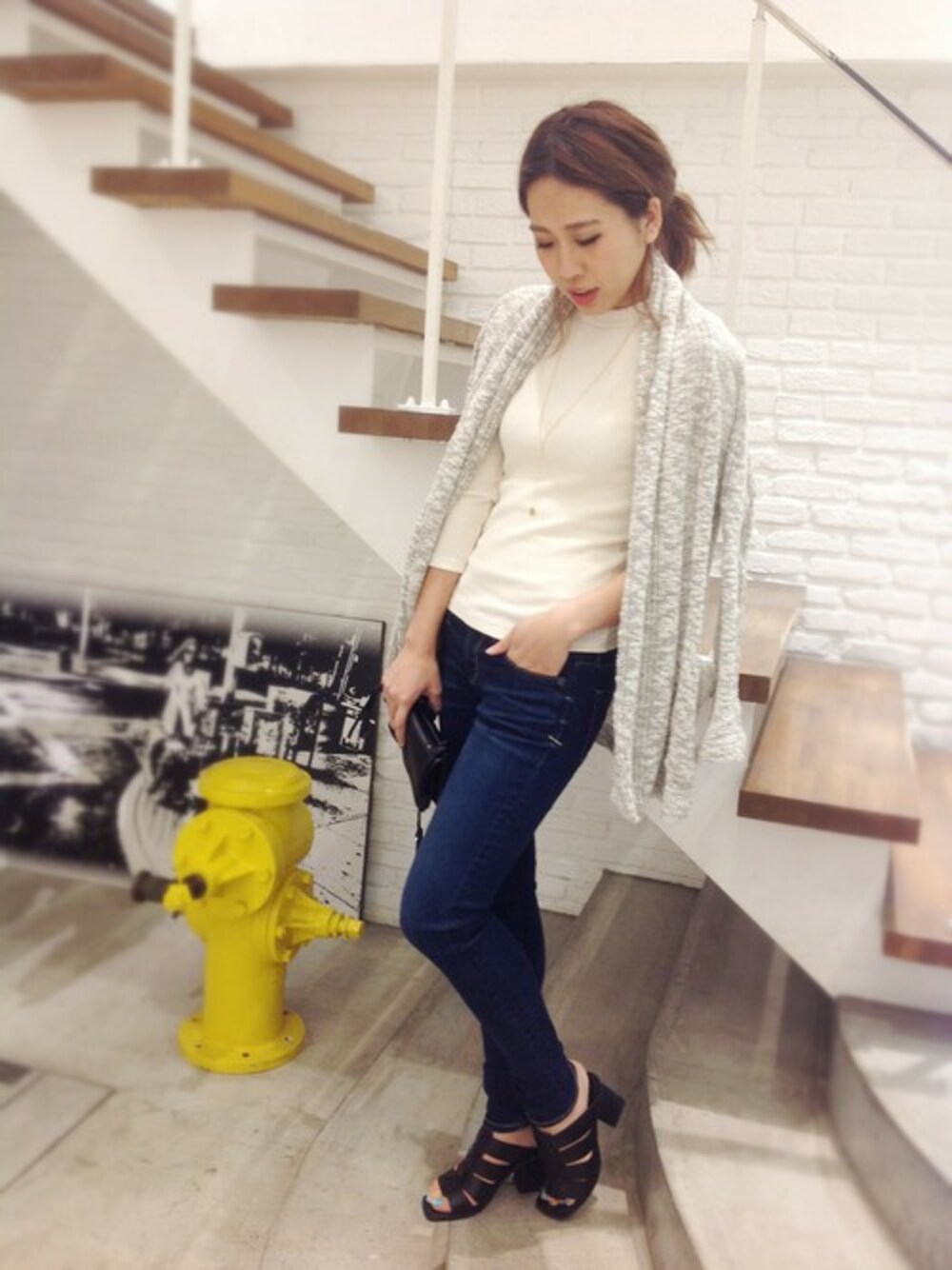 暖かい今日は、アウターをニットカーディガンにシフト*