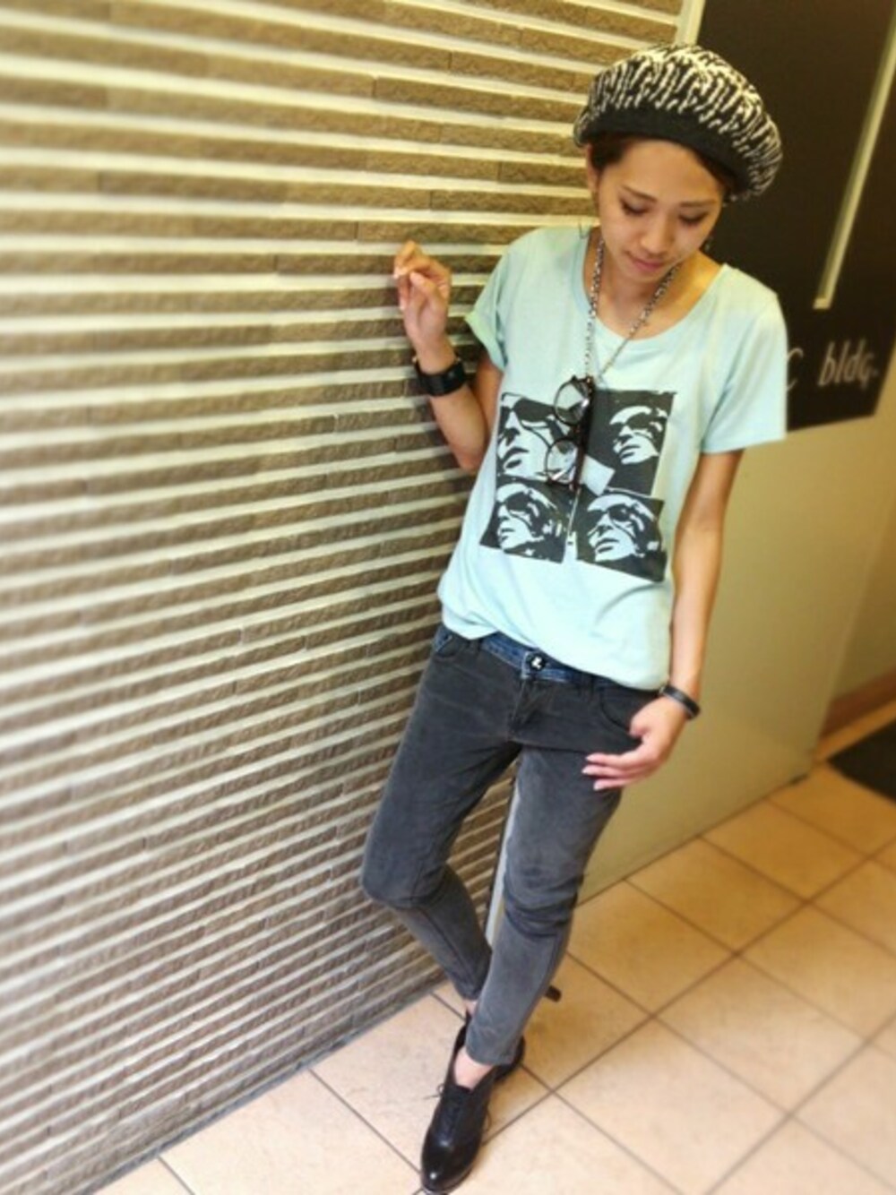 hama(CANALJEAN 神戸店)のTシャツ/カットソー「Caie グラフィックプリントTシャツ(sanglass)/カイエ」を使ったコーディネート