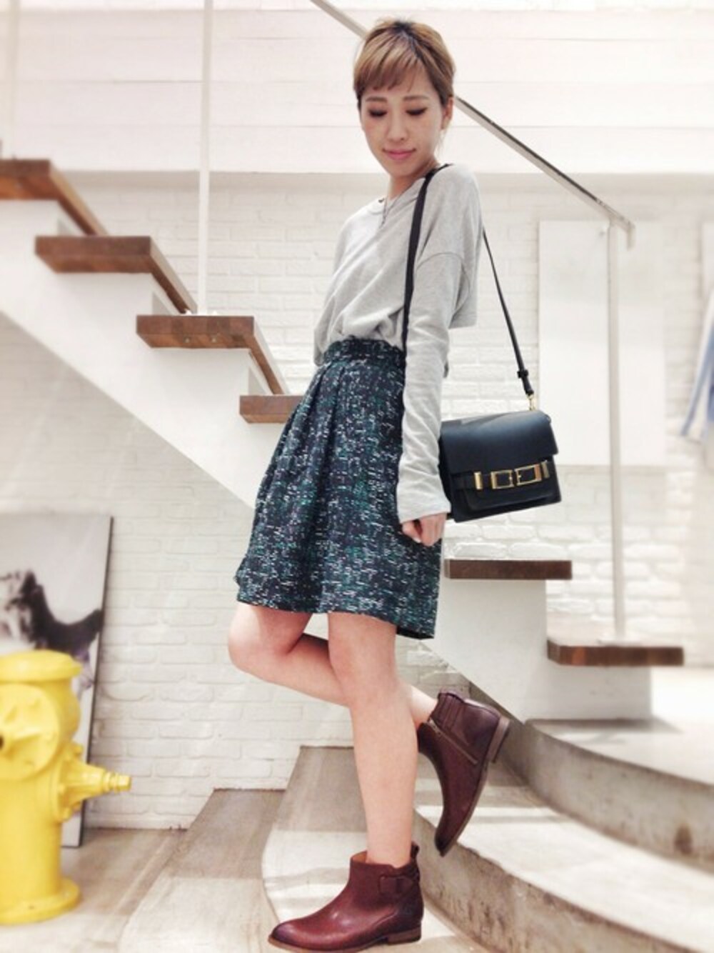 ottodame(オットダム)のフレアスカートは心を打たれる可愛さ♥︎♥︎ caie(カイエ)のトレーナーは生地が柔らかいので簡単にinできちゃう優れモノ☆ A.L.C(エーエルシー)のバッグを持てばどのコーデもおしゃれにまとまるはず♪