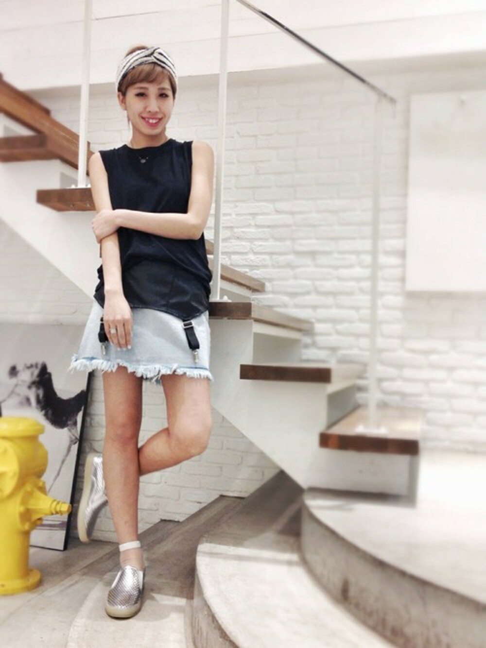 さりげなくサイドに開きがあるLNA(エルエヌエー)のタンクトップは夏まで活躍してくれる1枚♫ BITCHING AND JUNKFOOD (ビッチングアンドジャンクフード)のデニムスカートと相性ばっちり★