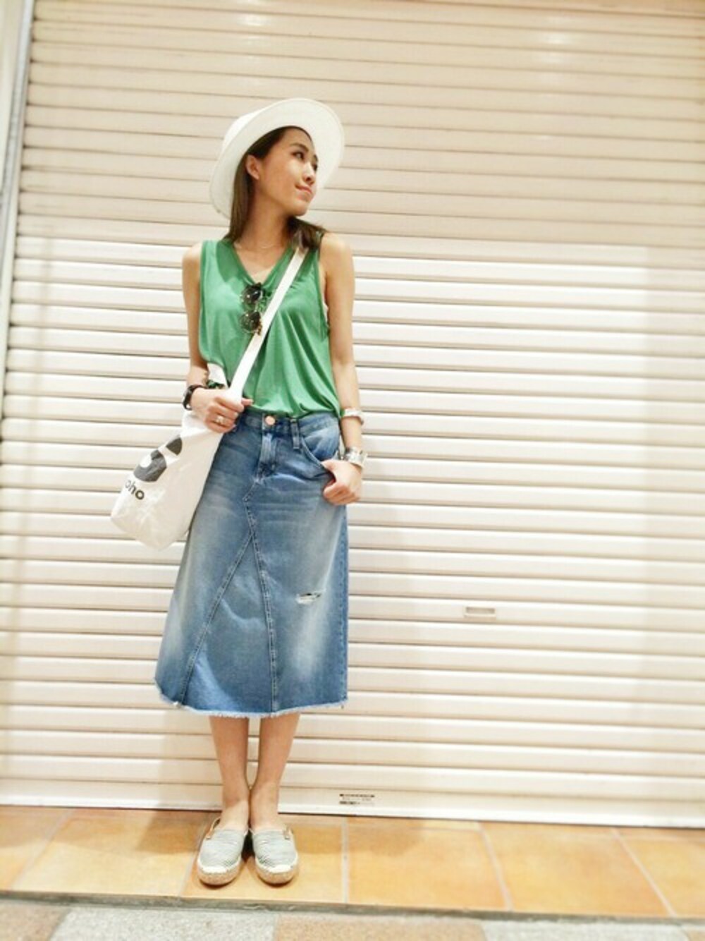 hama(CANALJEAN 神戸店)のTシャツ/カットソー「Lagoon (ラグーン) 背開きタンクトップ 」を使ったコーディネート
