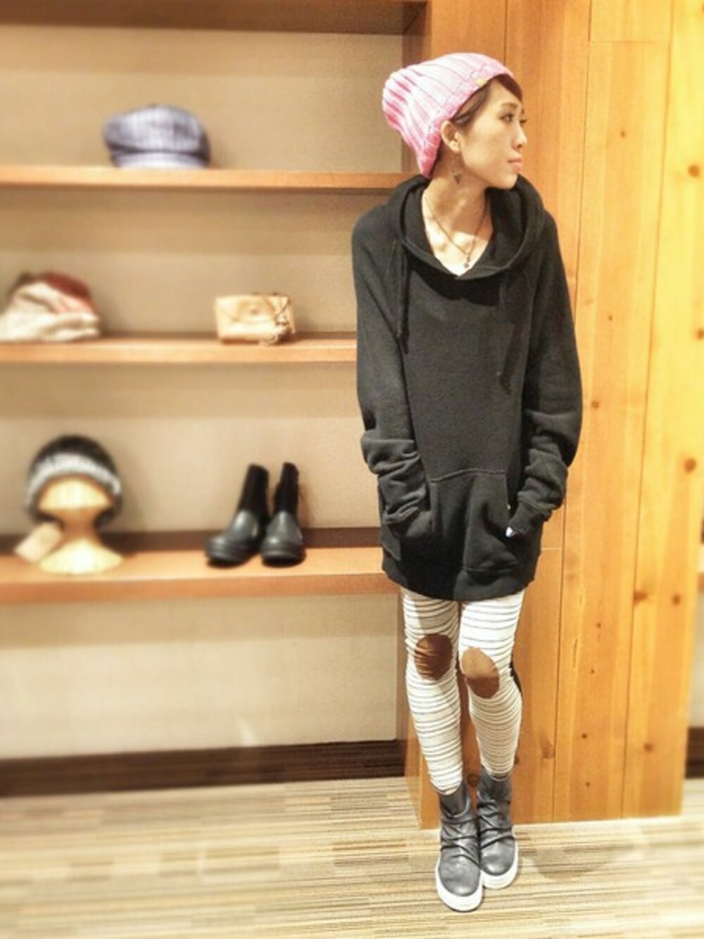 ルーズ感がCuteなGyupsy05(ジプシー・オー・ファイブ)のパーカー* レギンスを合わせてワンピース仕様にコーディネートしました。 あえてのメンズサイズをセレクトしたこのゆるさがたまりません♡